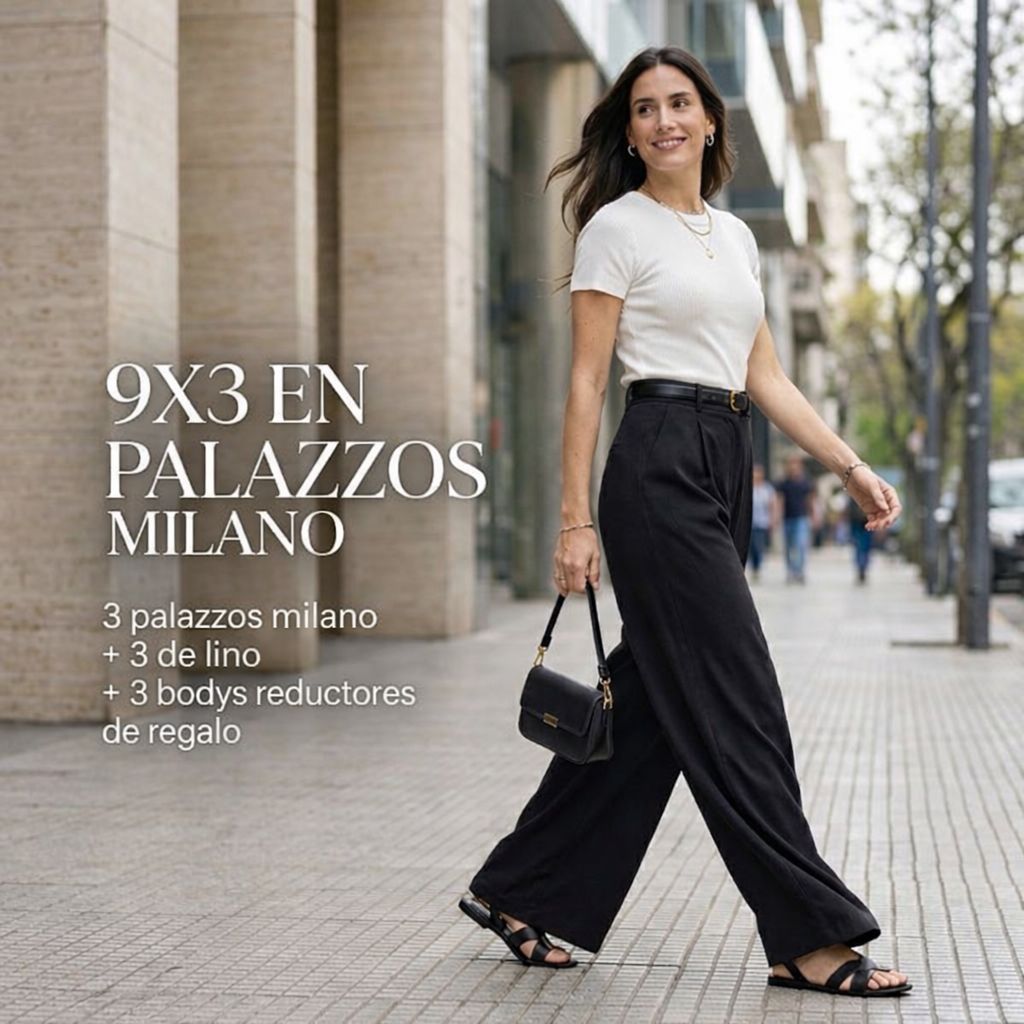 Comprás 3 palazzos milano + 3 palazzos de lino y te llevás de regalo 3 bodys reductores.