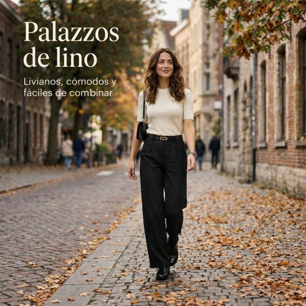 Tanto los palazzos milanocomo los de lino fueron elegidos para combinar comodidad, caída linda y facilidad para armar looks que se vean bien sin esfuerzo.