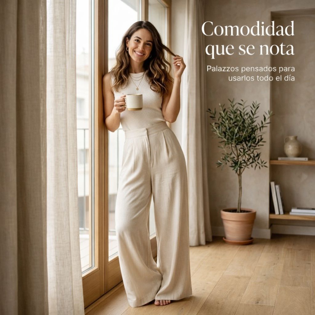 Esta promo combina dos estilos que se complementan perfecto: palazzos milano para looks más prolijos, armados y versátiles, y palazzos de lino para días donde buscás frescura, soltura y una caída más liviana.